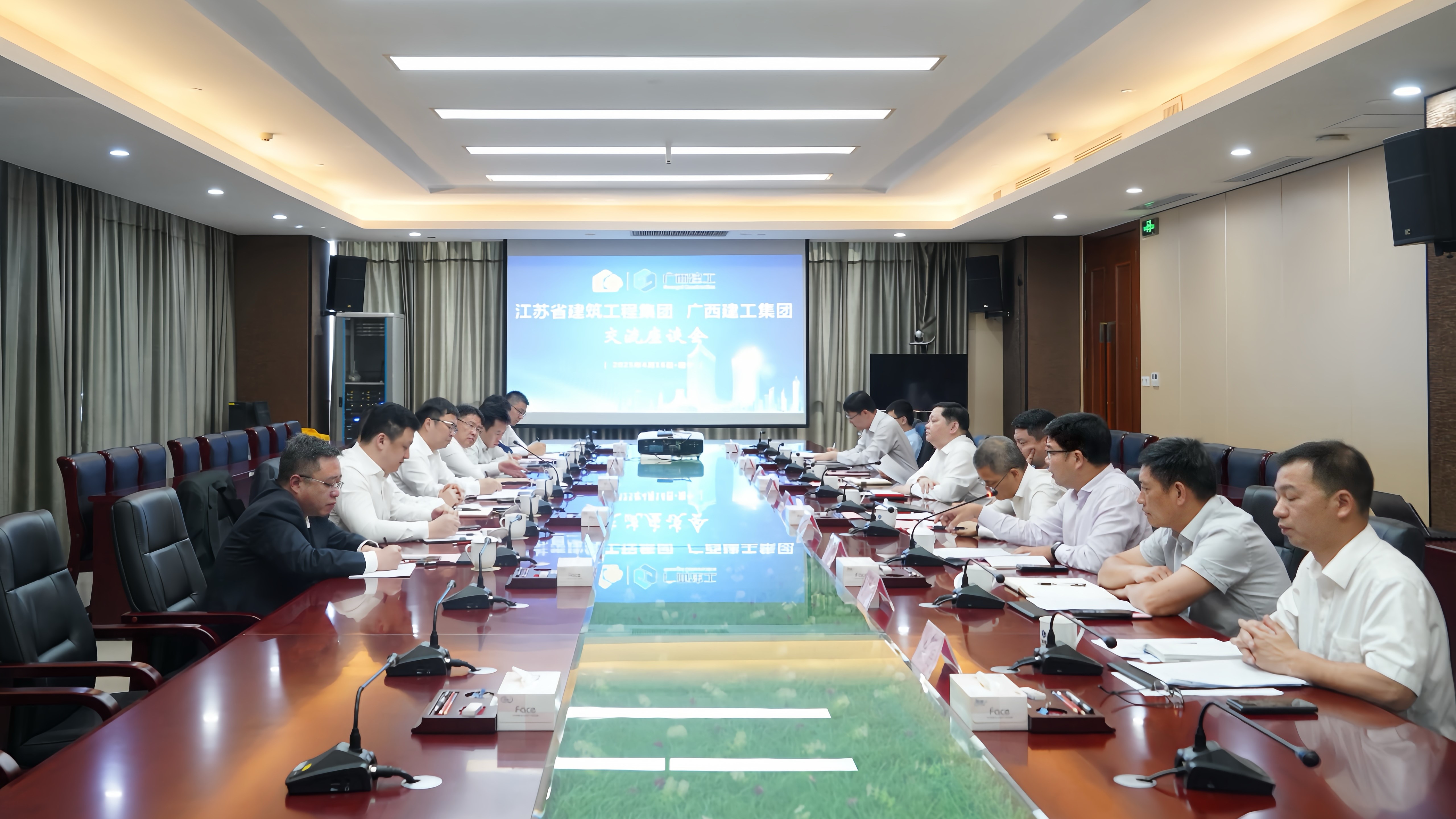 蔣寧對廣西建工的熱情接待表示感謝,并簡要介紹江蘇省建近期生產(chǎn)經(jīng)營情況。他指出,當前建筑市場持續(xù)變化,行業(yè)都面臨著一些共性的挑戰(zhàn),廣西建工圍繞全年目標,在平臺建設(shè)、清收清欠、融資信貸、風險化解等方面的優(yōu)秀經(jīng)驗以及搶抓政策和市場新機遇、應(yīng)對行業(yè)深度調(diào)整的有效策略值得江蘇省建借鑒和學習。希望雙方發(fā)揮各自優(yōu)勢,持續(xù)開展更深入的交流學習,加強溝通對接,加大業(yè)務(wù)合作,實現(xiàn)經(jīng)驗共享、互促提升,攜手共贏發(fā)展。